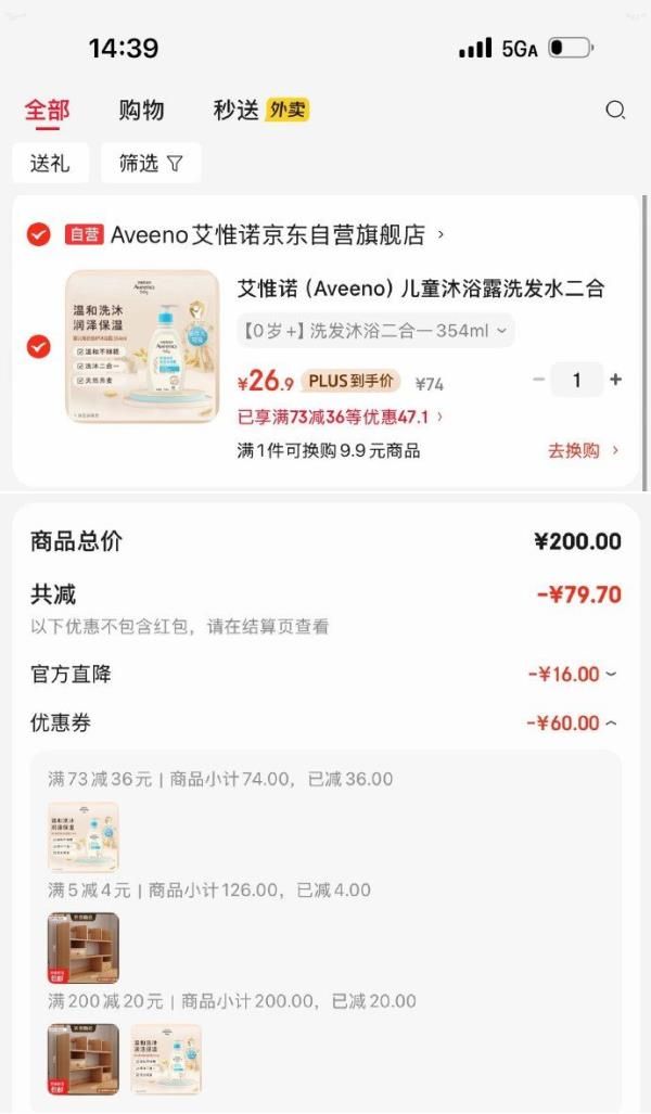 艾惟诺(Aveeno)儿童沐浴露洗发水二合一354ml