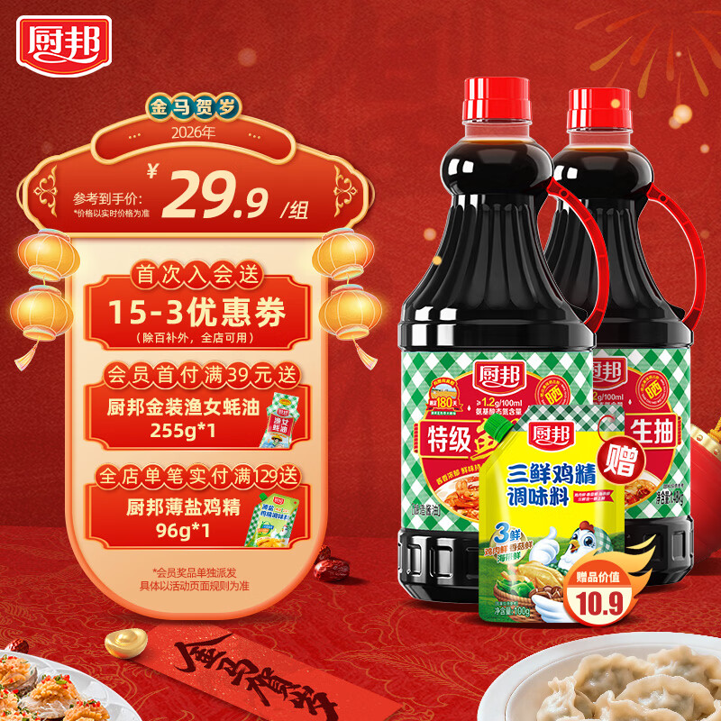 【官方旗舰店】厨邦 特级鲜生抽1.48kg 2瓶