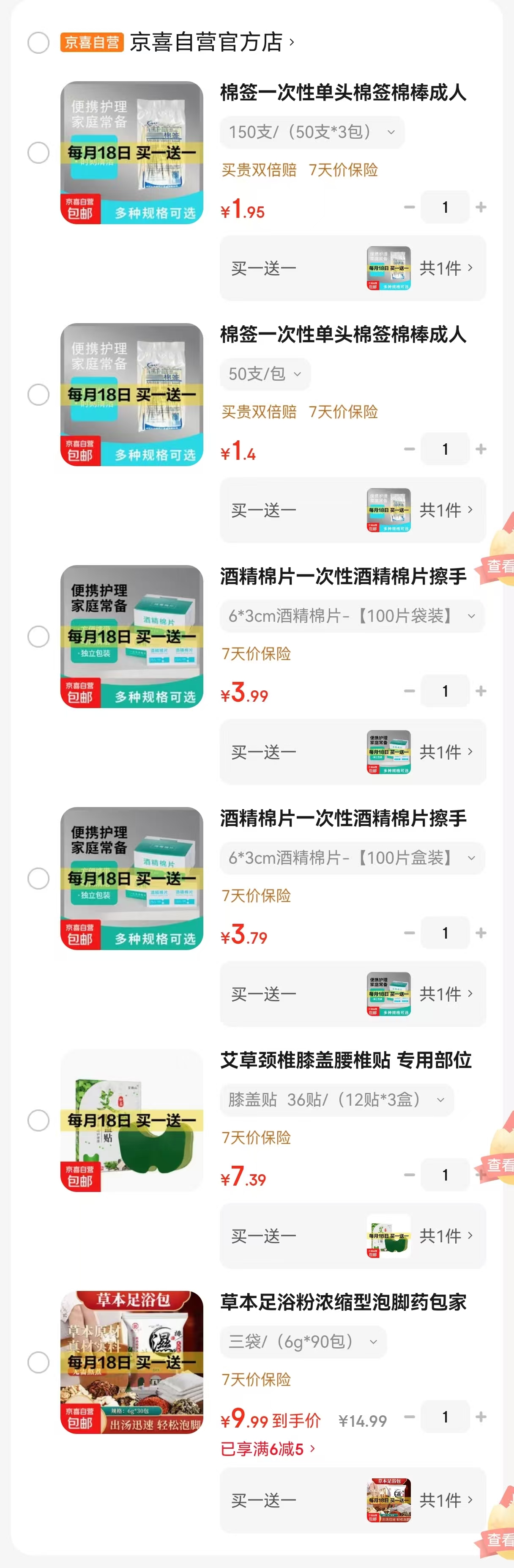 京喜 买一送一 今天结束 一次性单头棉签150支 1.9 买一送一 一次性单头棉签50支 1.4 买一送一