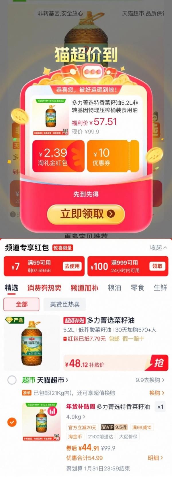 详情页进入超级补贴加购,领59-7红包