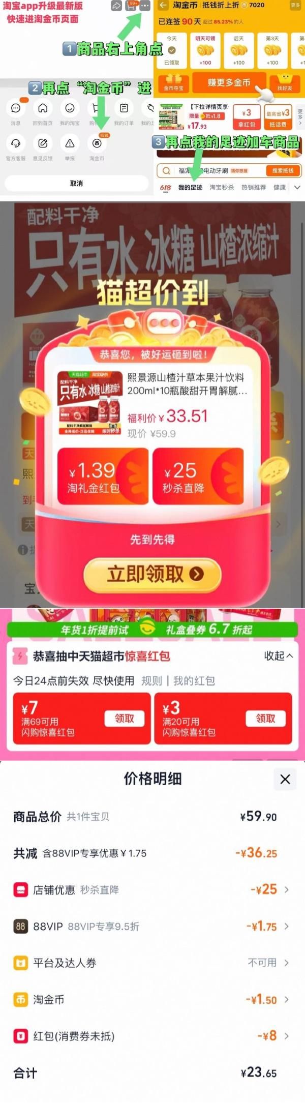 淘金币页面我的足迹加购