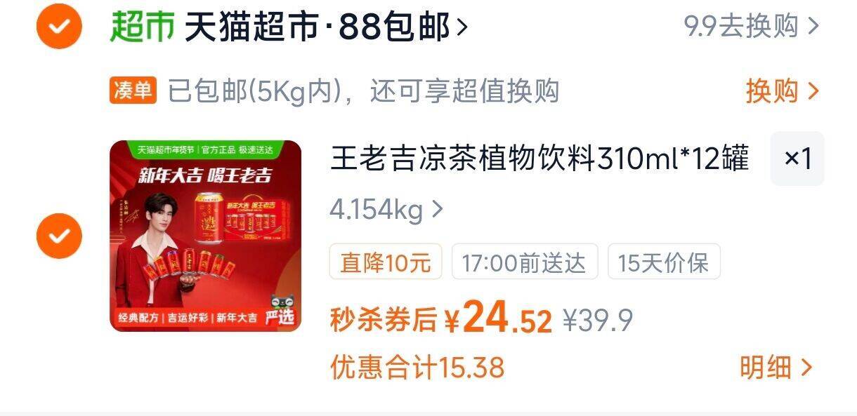 24.5元,折2/罐 王老吉彩罐凉茶310ml*12罐 好单发报员 2026年01月19日 15:06 0 举报 24.5元,折2/罐王老吉彩罐凉茶310ml*12罐https://m.tb.cn/h.7NXTIHC 复制文案