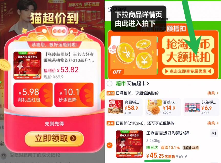 神圿快88vip1.8亓/罐 拍下45亓!叠5.5淘金币 需下拉详情页去金币会场拍下 好单发报员 2026年01月19日 15:48 0 举报 神圿快88vip1.8亓/罐拍下45亓!叠5.5淘金币需下拉详情页去金币会场拍下【王老吉】凉茶饮料310ml*24罐 https://m.tb.cn/h.7n108CO 复制文案