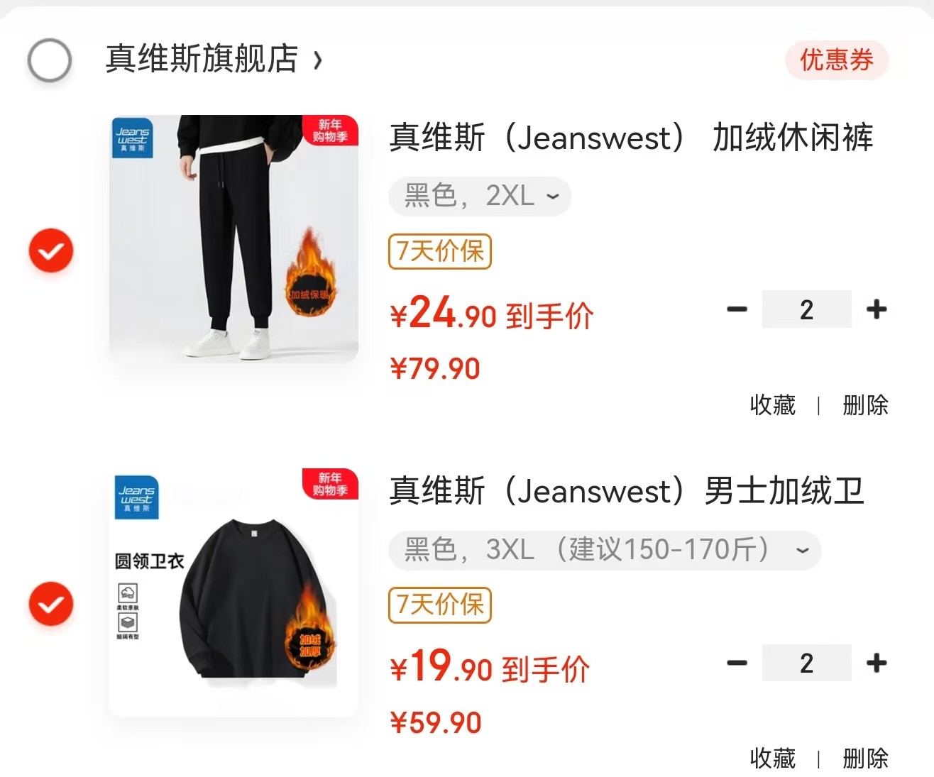 真维斯 男士加绒卫衣,任选2件【39.8】