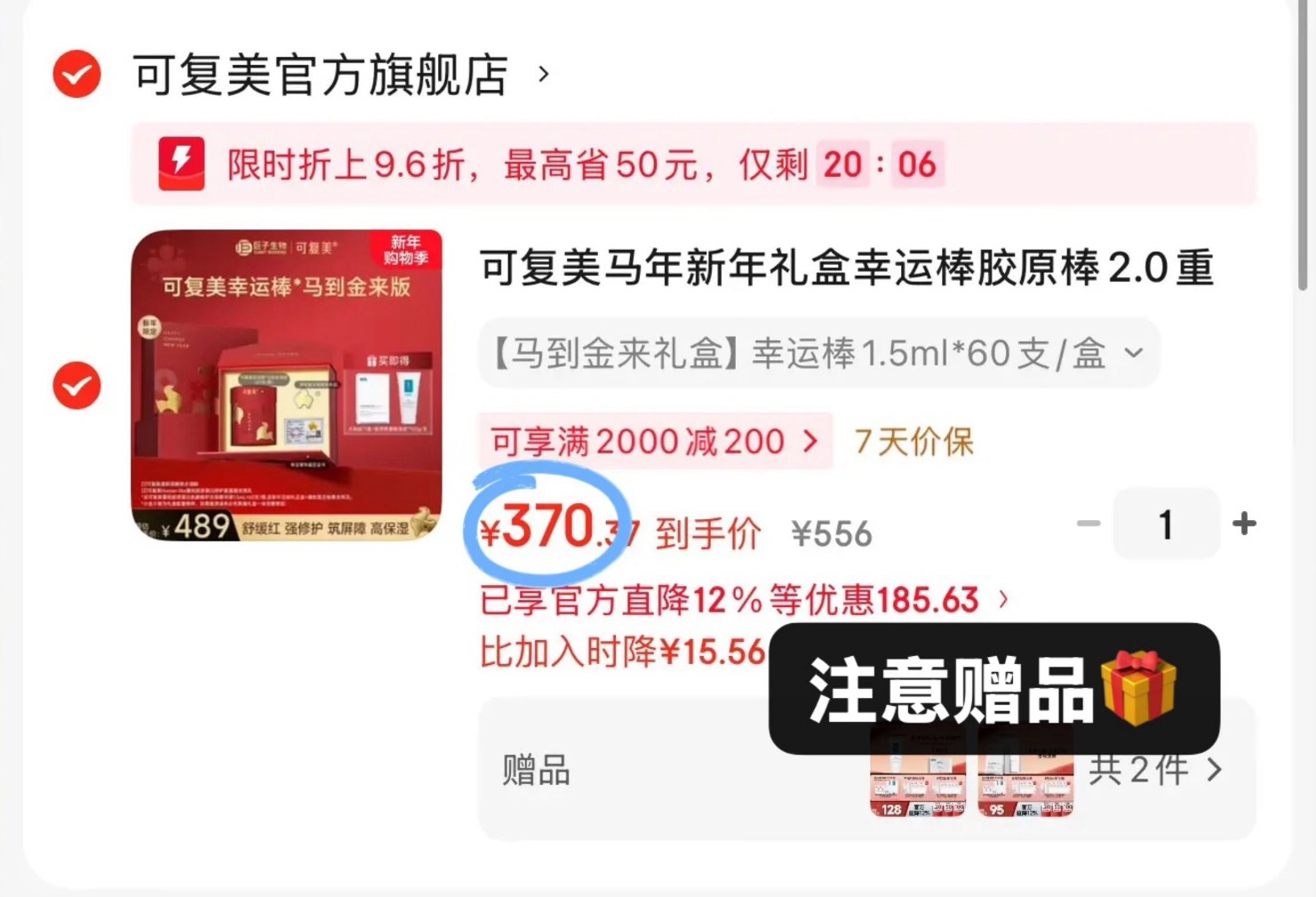 可复美 马到金来礼盒60支次抛 5片面膜 洁面120g 定制黄金饰品,凑后【370】