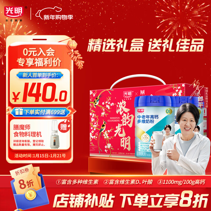 自营光明 高钙多维中老年奶粉800g*2礼盒