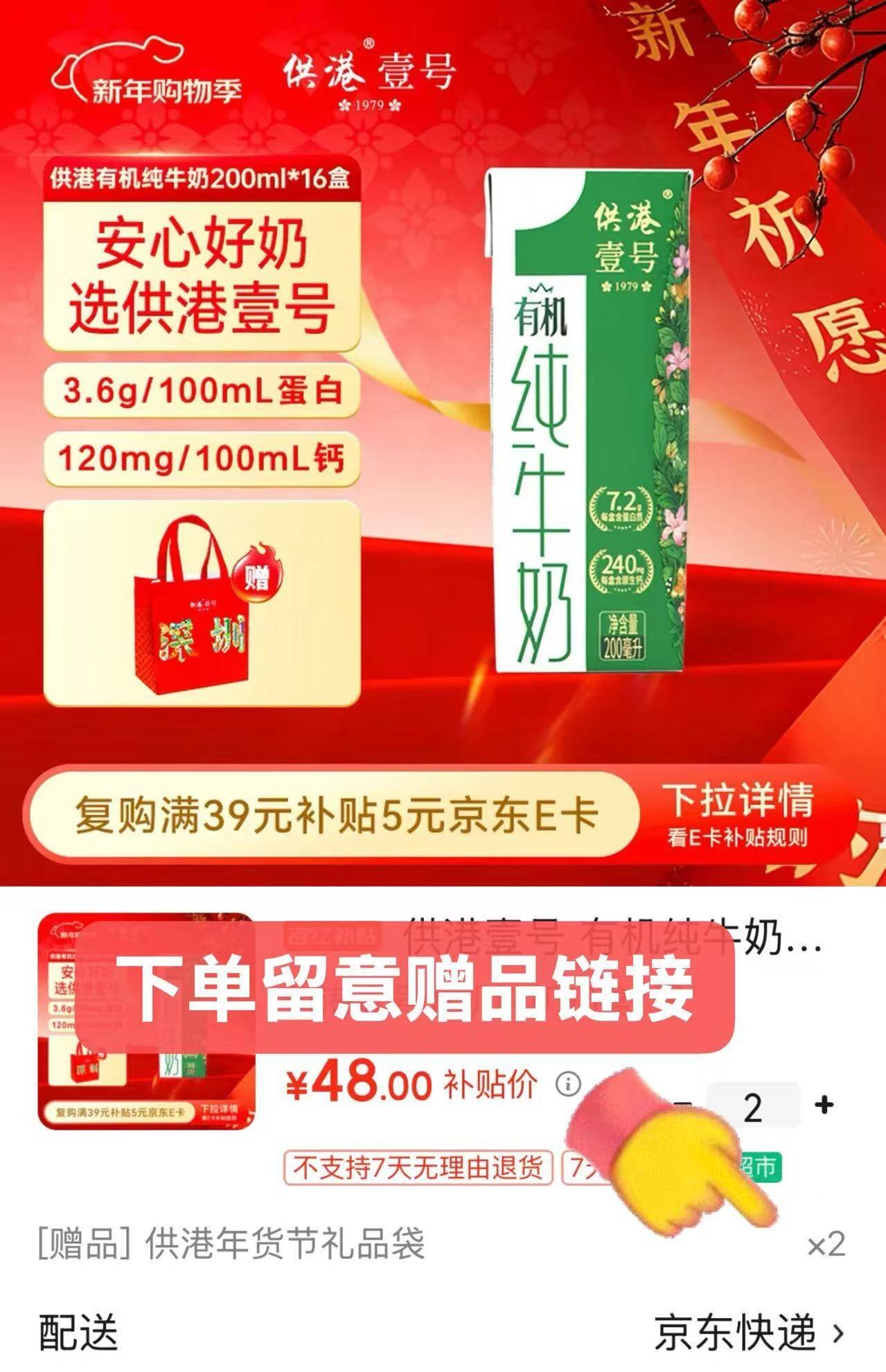 【自营】供港壹号 有机纯奶16盒