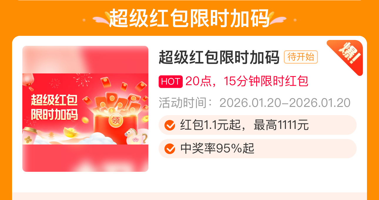 20:00~20:15持续15分钟,人人必中1.1亓起