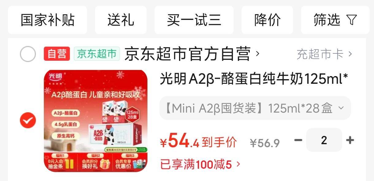 光明A2β-酪蛋白纯牛奶