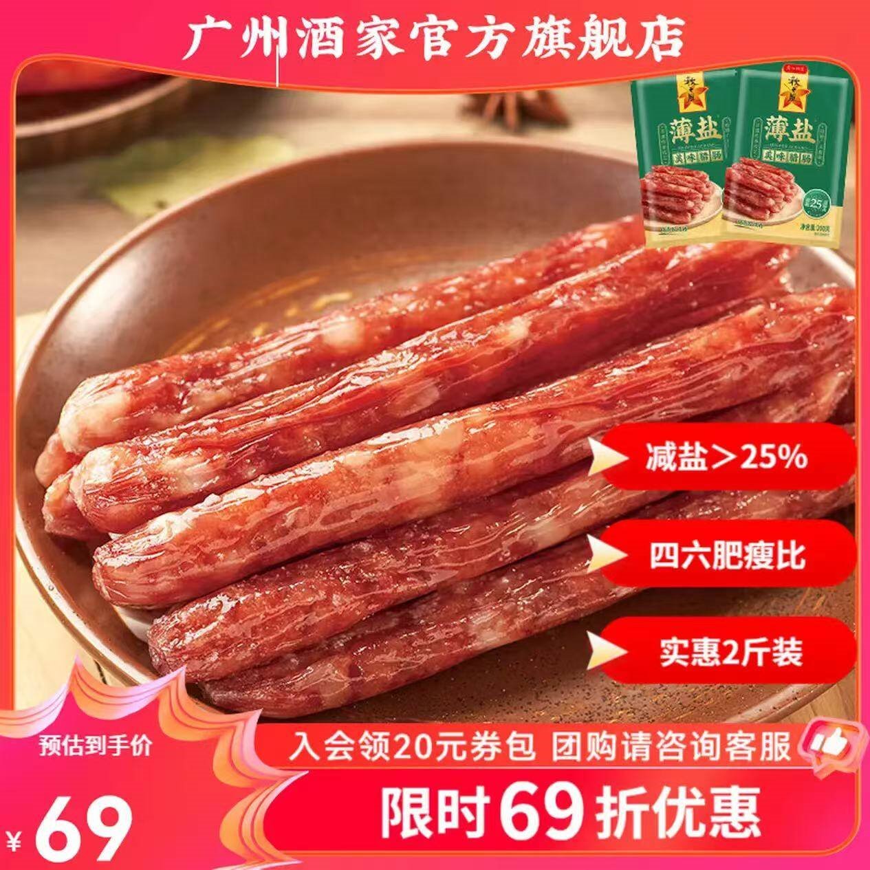广州酒家 薄盐腊肠500g*2袋