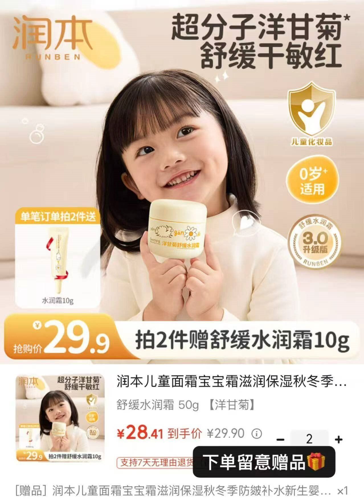 润本 洋甘菊舒缓水润霜 50g 买2件39.8亓,Plus付36.8亓 *贈面霜小样10g 新生儿可用好单发报员2026年01月24日 14:260举报 润本 洋甘菊舒缓水润霜 50ghttps://u.jd.com/J1tRhSr 买2件39.8亓,Plus付36.8亓*贈面霜小样10g 新生儿可用复制文案
