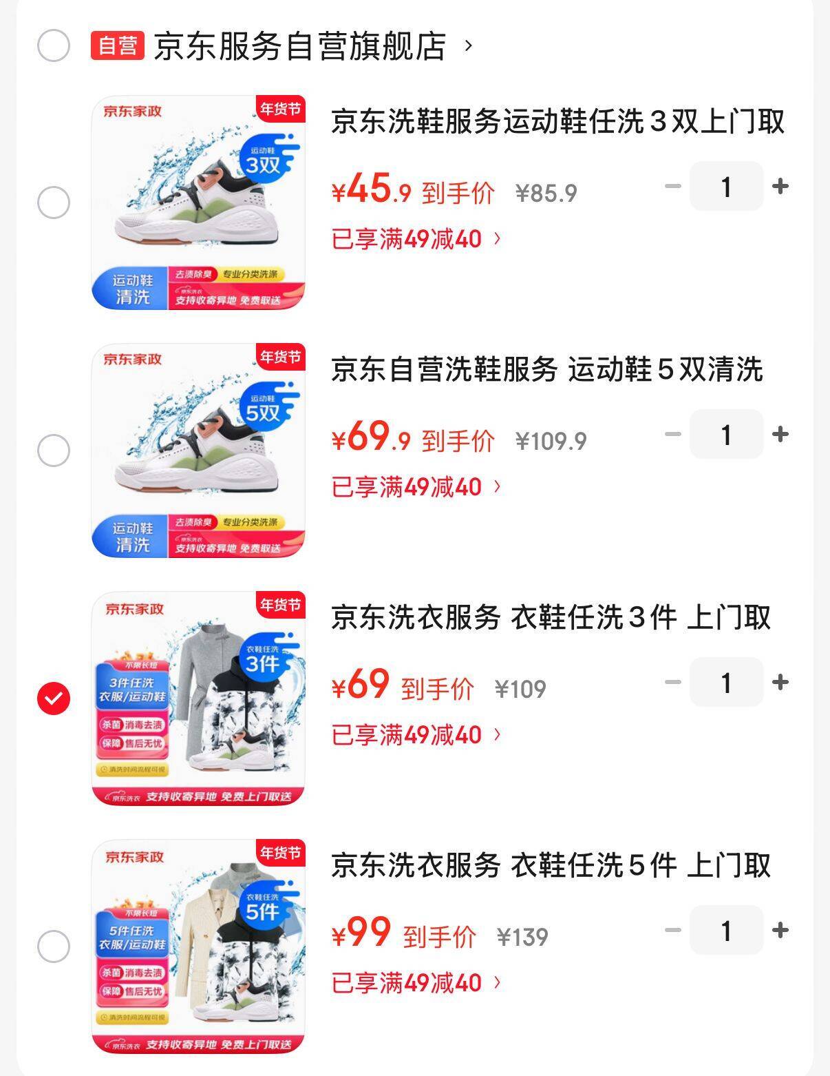 自营 京东服务 衣鞋任洗