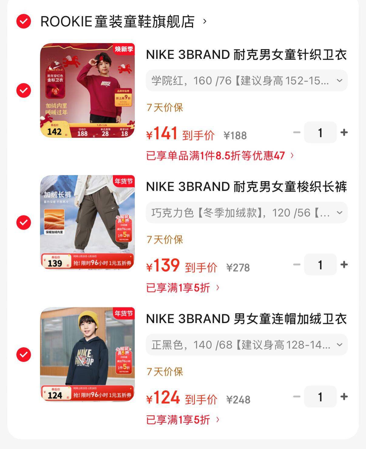 耐克童装 5折任选