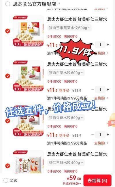 11.9元/件!每个饺子都有 思念 大虾仁系列大包装水饺 任选5件59.5元 多款任选搭配好单发报员2026年01月25日 15:530举报 11.9元/件!每个饺子都有思念 大虾仁系列大包装水饺https://u.jd.com/JgKTnM8 任选5件59.5元 多款任选搭配复制文案
