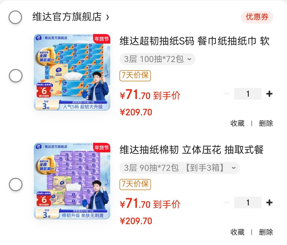 补贴好忦!维达抽纸车