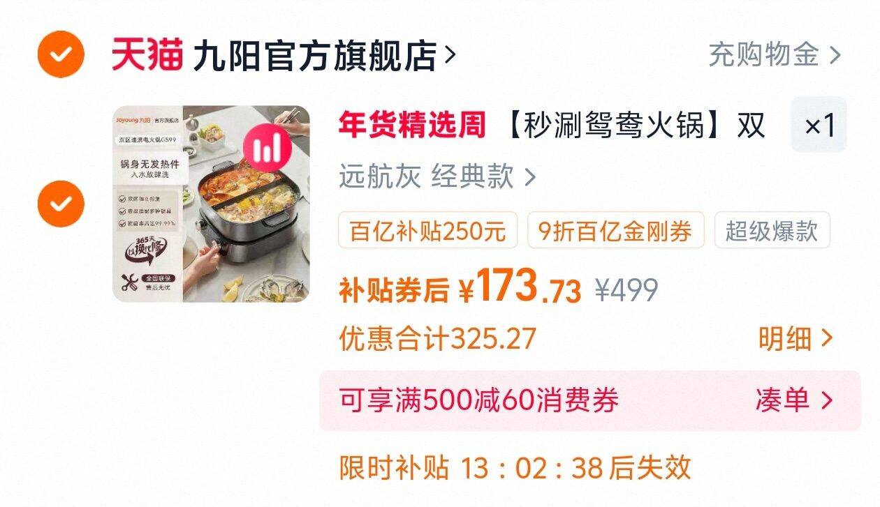 164亓叠金刚券 实付174亓-晒图10=164亓 九阳家用多功能鸳鸯电火锅 好单发报员 2026年01月26日 11:10 0 举报 164亓叠金刚券实付174亓-晒图10=164亓九阳家用多功能鸳鸯电火锅-先把楼上金刚券全部都領上下拉详情直播间立减下单~https://m.tb.cn/h.7KMpap3 复制文案