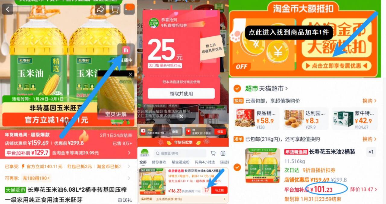 2、右上角进直播间等几秒弹9折券并领取