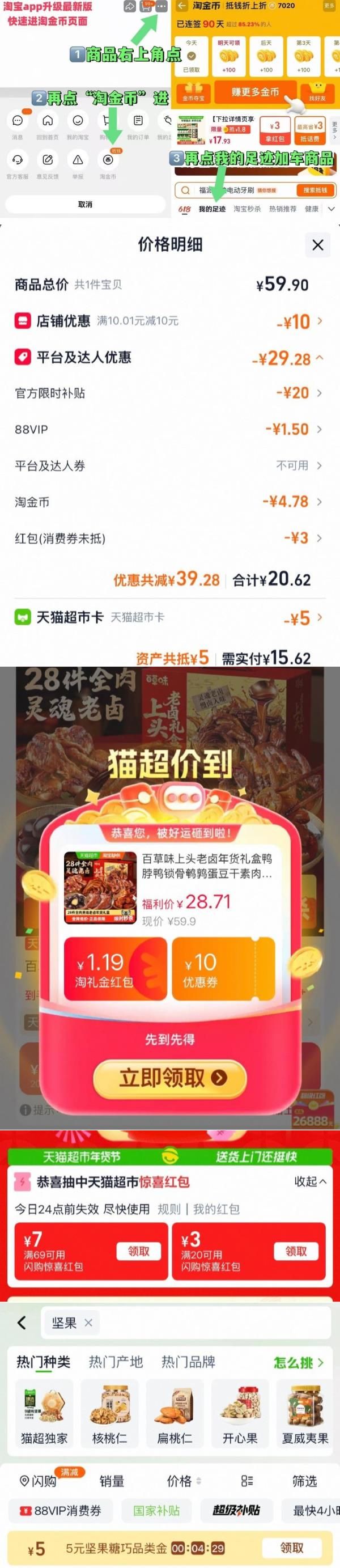 ③淘金币页面我的足迹加购