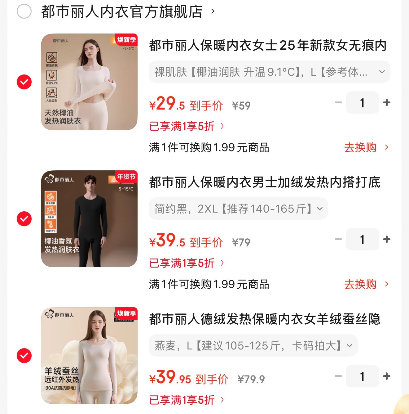 都市丽人 德绒发热保暖内衣套装【39.9】