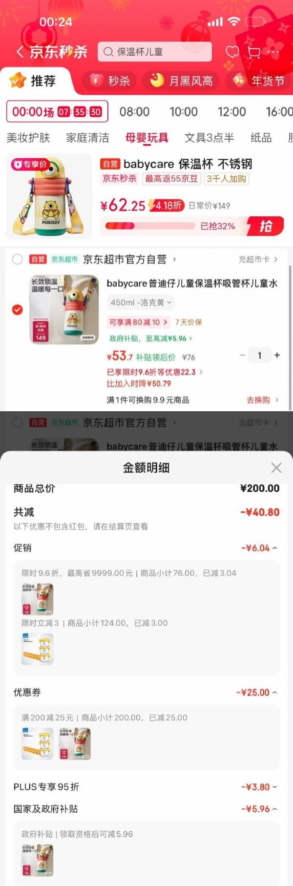 弹9.6折立减,凑后【53.7】