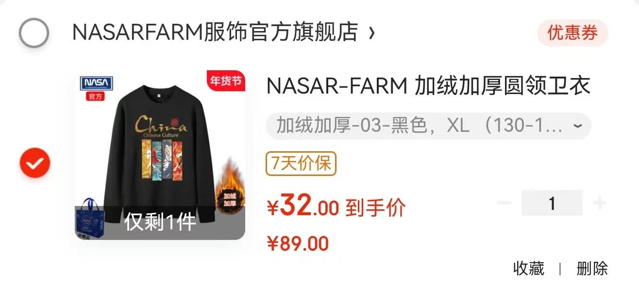 NASAR-FARM 加绒加厚圆领卫衣【32】