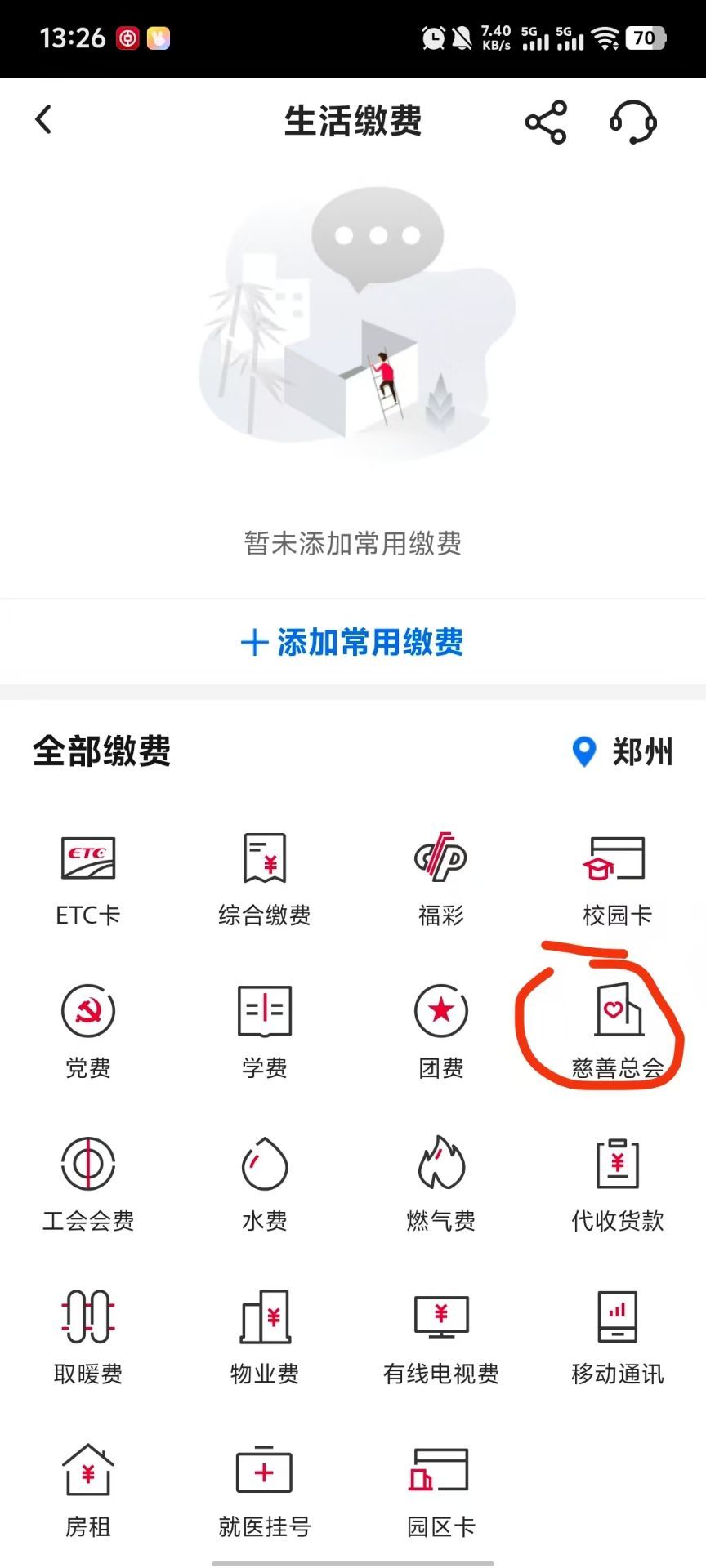 新步骤:右上角切地址漯河,点击校园卡进去充值,找到,高级中学南校区