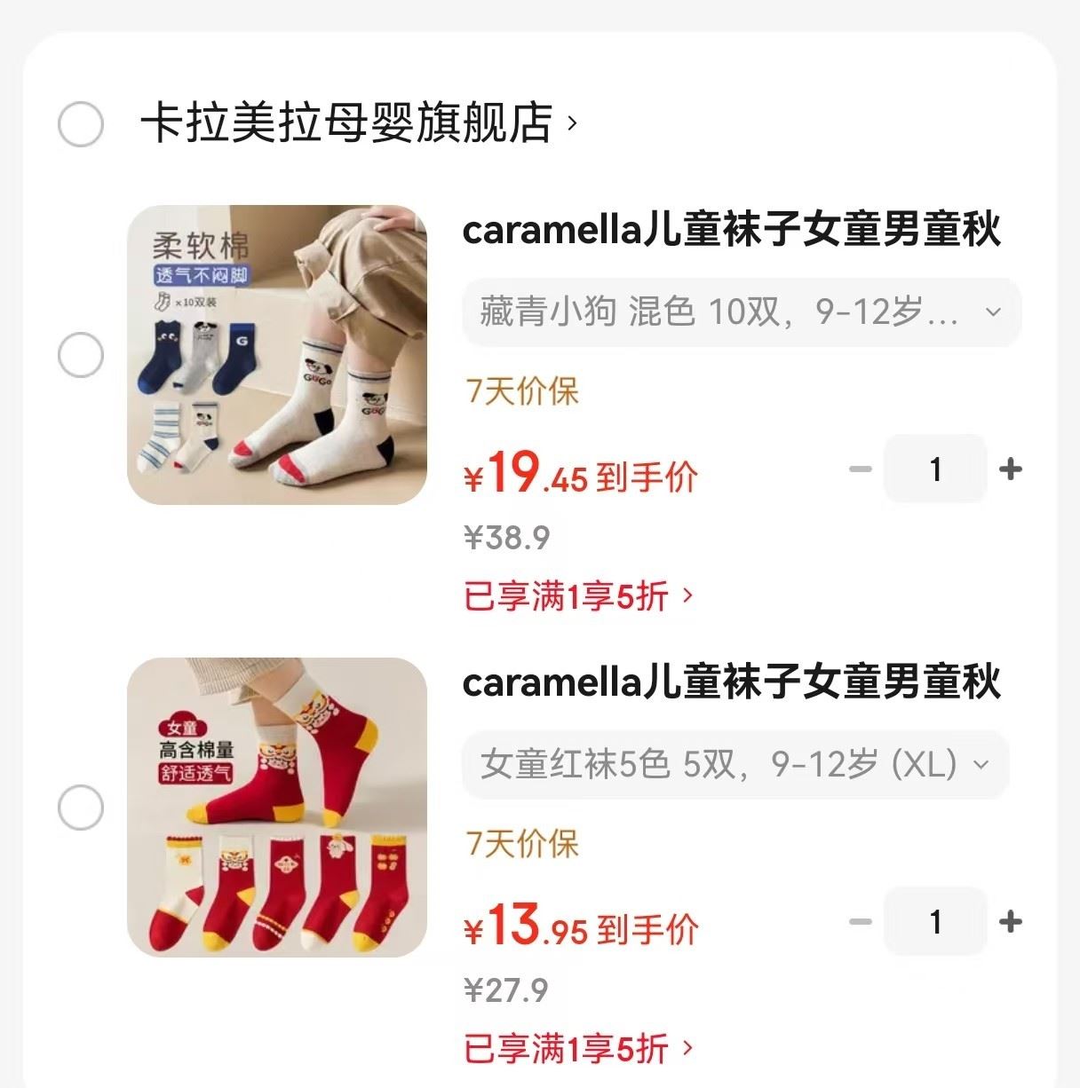 caramella儿童袜子女童男童秋冬棉袜 10双【19.4】