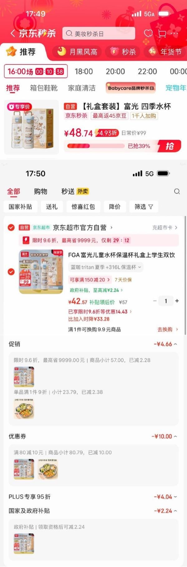 弹9.6折立减,凑后【42.57】
