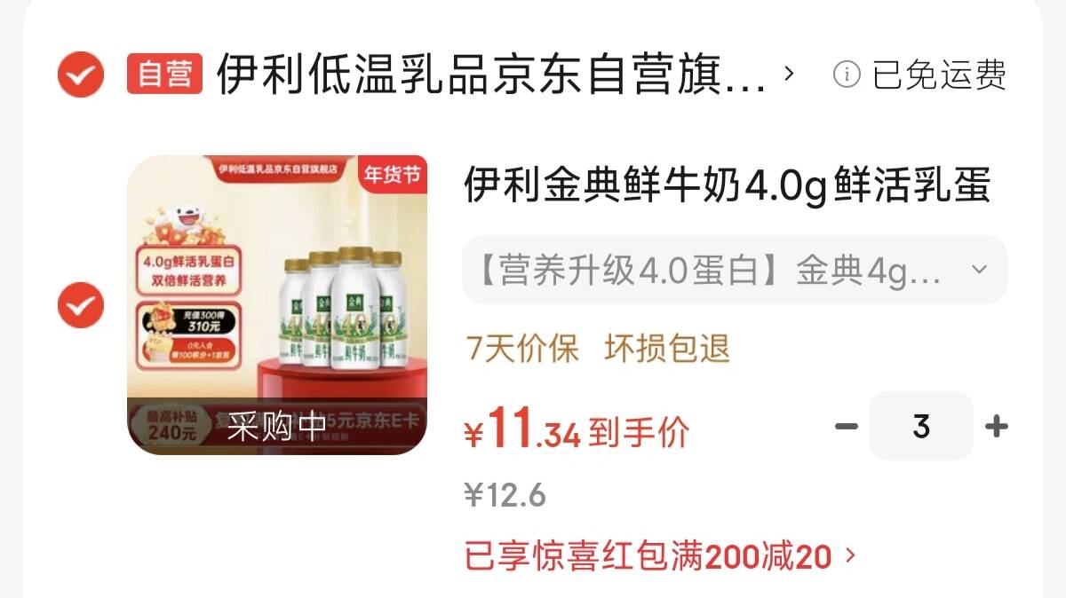 金典4.0g高品质鲜牛奶