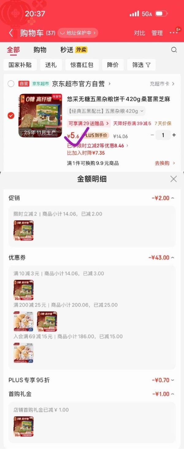 砸3券,1首单,弹2立减,凑后【5.6】
