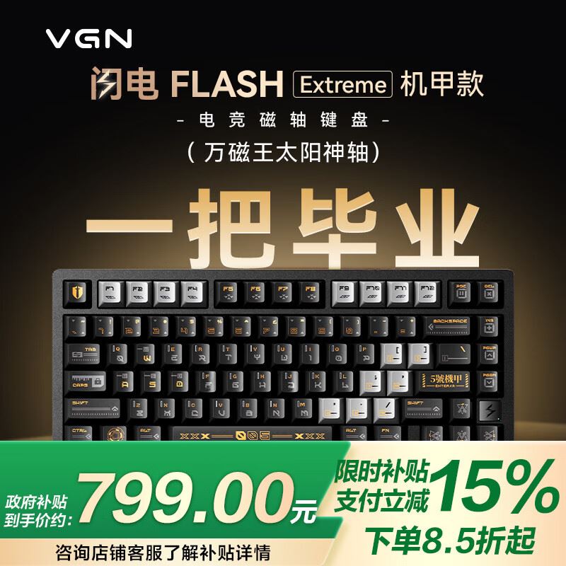 VGN闪电磁轴键盘 RT电竞游戏客制化机械键盘铝坨 闪电Extreme 万磁王太阳神轴 机甲窽,
