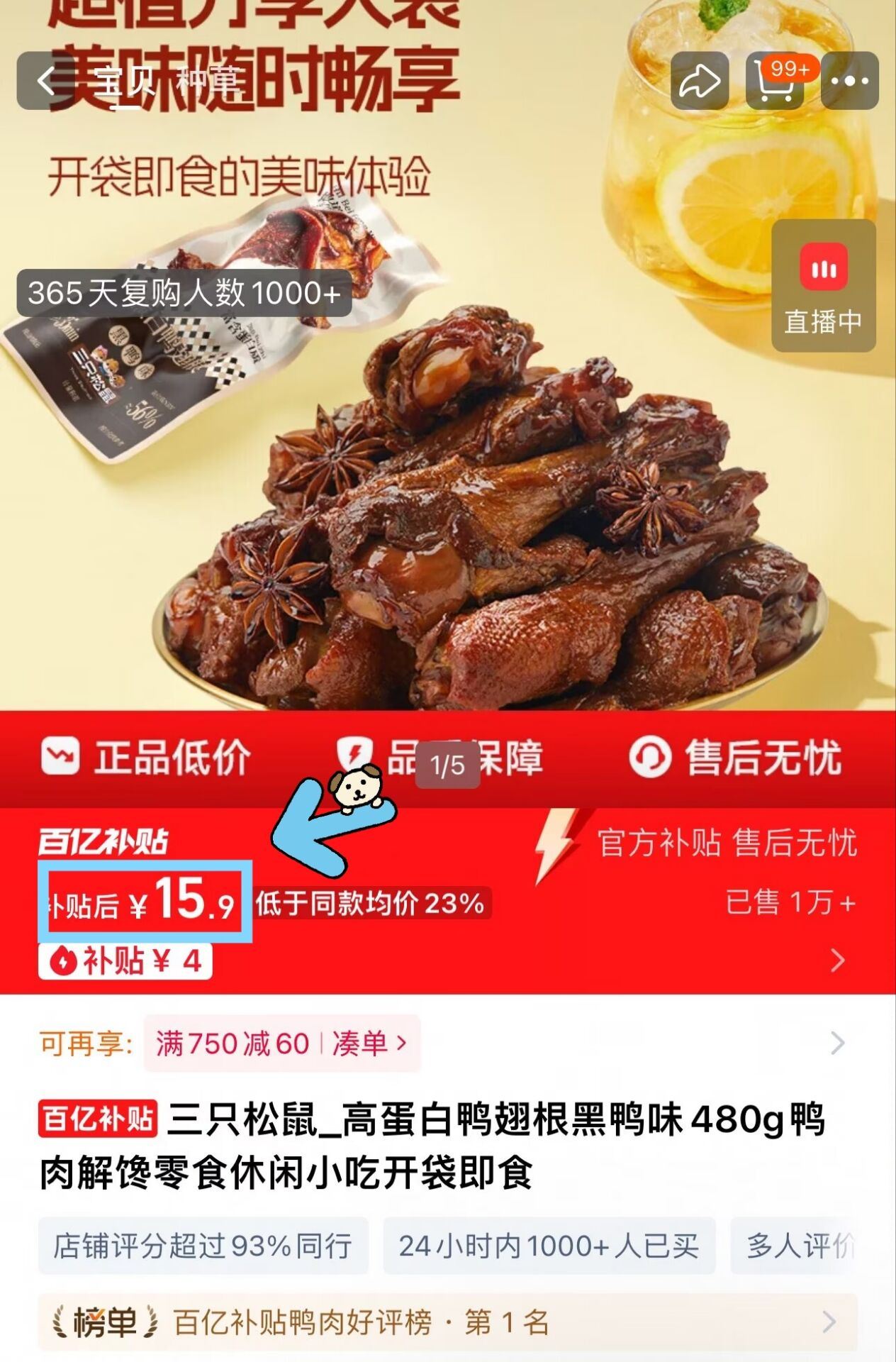 三只松鼠鸭翅根480克15~16根