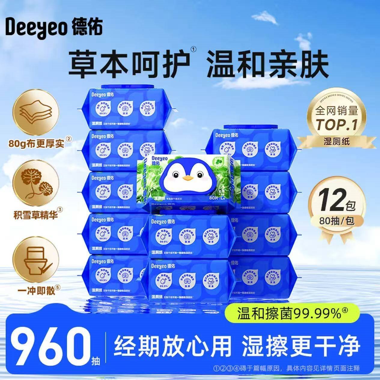 德佑 积雪草湿厕纸80抽*12包