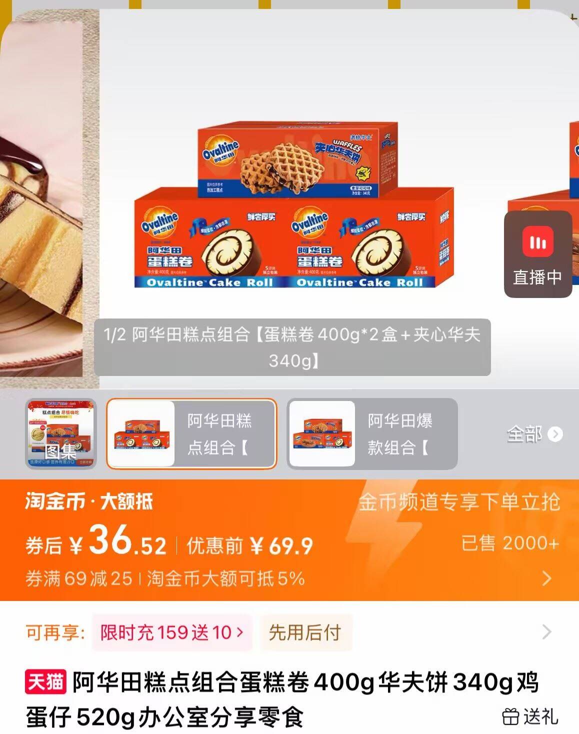 36.5元!下拉叠金币下单 阿华田 糕点组合共3箱 蛋糕卷 爆浆鸡蛋仔 华夫饼好单发报员2026年02月02日 16:100举报 36.5元!下拉叠金币下单【阿华田】糕点组合共3箱蛋糕卷 爆浆鸡蛋仔 华夫饼麦芽蛋白 可可粉 丝滑细腻!-https://m.tb.cn/h.7IImM36复制文案