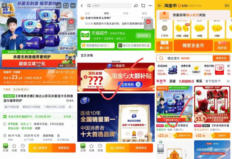 4块多/包维达湿巾刚需屯 维达山茶花湿巾80片*5元23.2 -好单发报员2026年02月02日 16:500举报 4块多/包维达湿巾刚需屯维达山茶花湿巾80片*5元23.2-需88号叠5福袋,加购才成立需下拉详情进金币页面拍下https://m.tb.cn/h.7IH7gmF复制文案