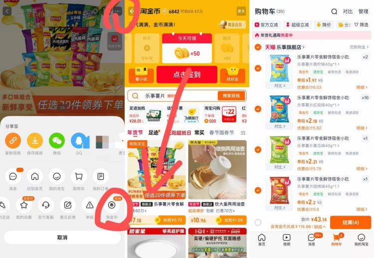 折2块/包 年货怎么能少了薯片! 乐事薯片组合任选20件43元.1 -好单发报员2026年02月02日 17:010举报 折2块/包 年货怎么能少了薯片!乐事薯片组合任选20件43元.1-1.商品右上角3个点,选淘金币2.再选 我的足迹-找到商品拍下https://m.tb.cn/h.7IHwyiB复制文案