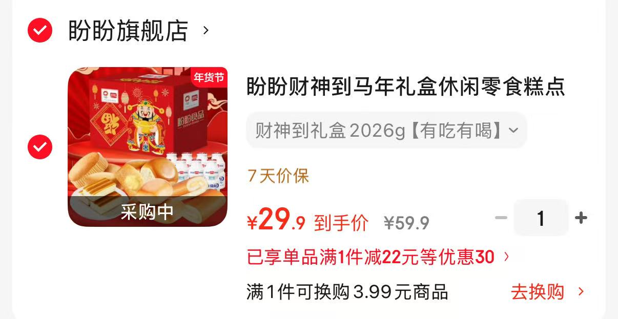 盼盼 财神到马年礼盒 财神到礼盒2026g【29.9】