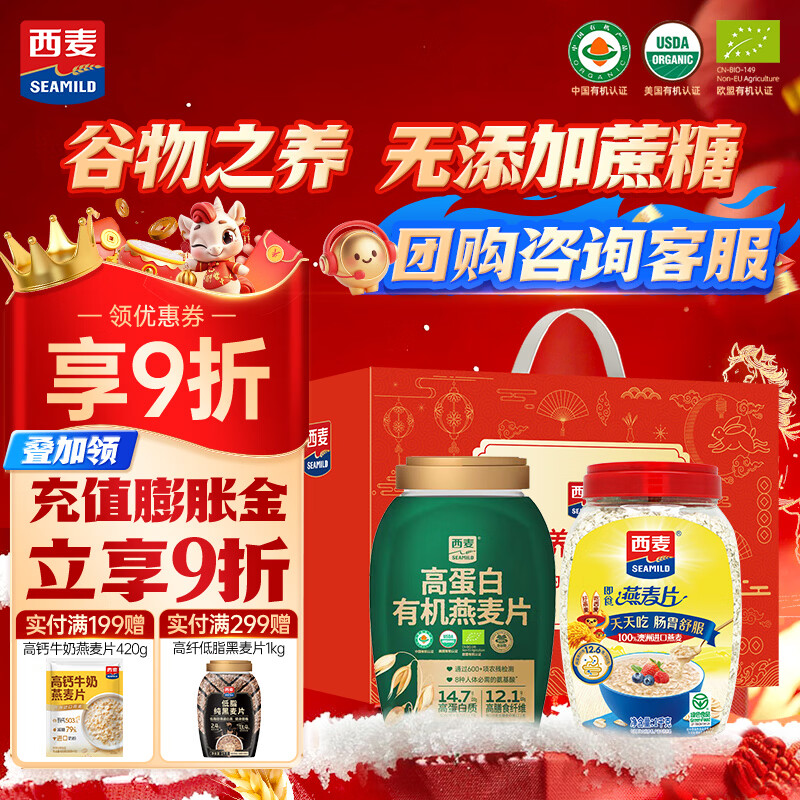自营西麦 即食纯燕麦片礼盒 2020g