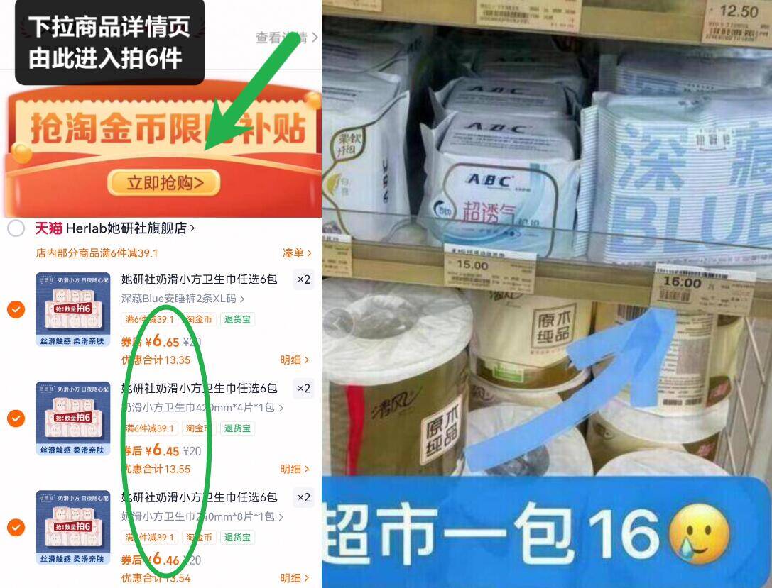 0点6.5亓/件赠护垫*1包 任选6件39亓,最多到手288片 下拉详情进淘金币会场拍好单发报员2026年02月02日 23:420举报 0点6.5亓/件赠护垫*1包任选6件39亓,最多到手288片下拉详情进淘金币会场拍【她研社】日夜用卫生巾组合https://m.tb.cn/h.7sB8AlY线下1包16亓、咱6块多到手日/夜用/安睡裤都是一个忦复制文案