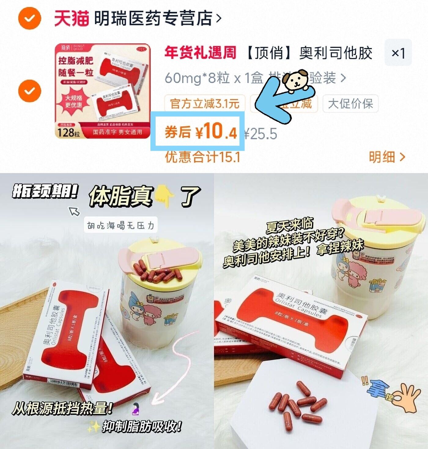【顶俏】奥利司他胶囊8粒