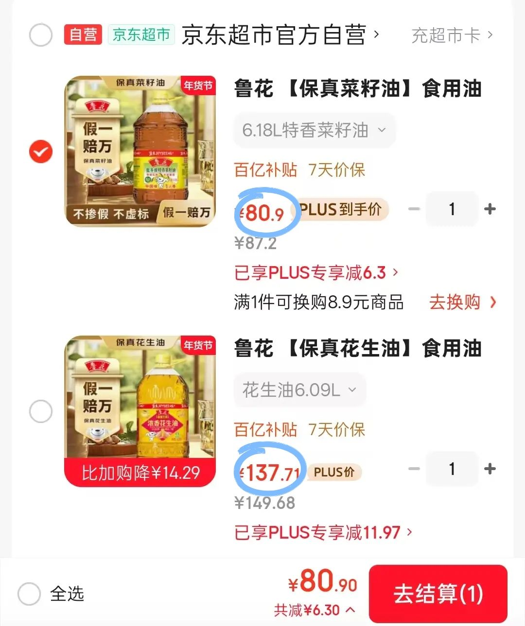 鲁花 低芥酸特香菜籽油6.18L【80】