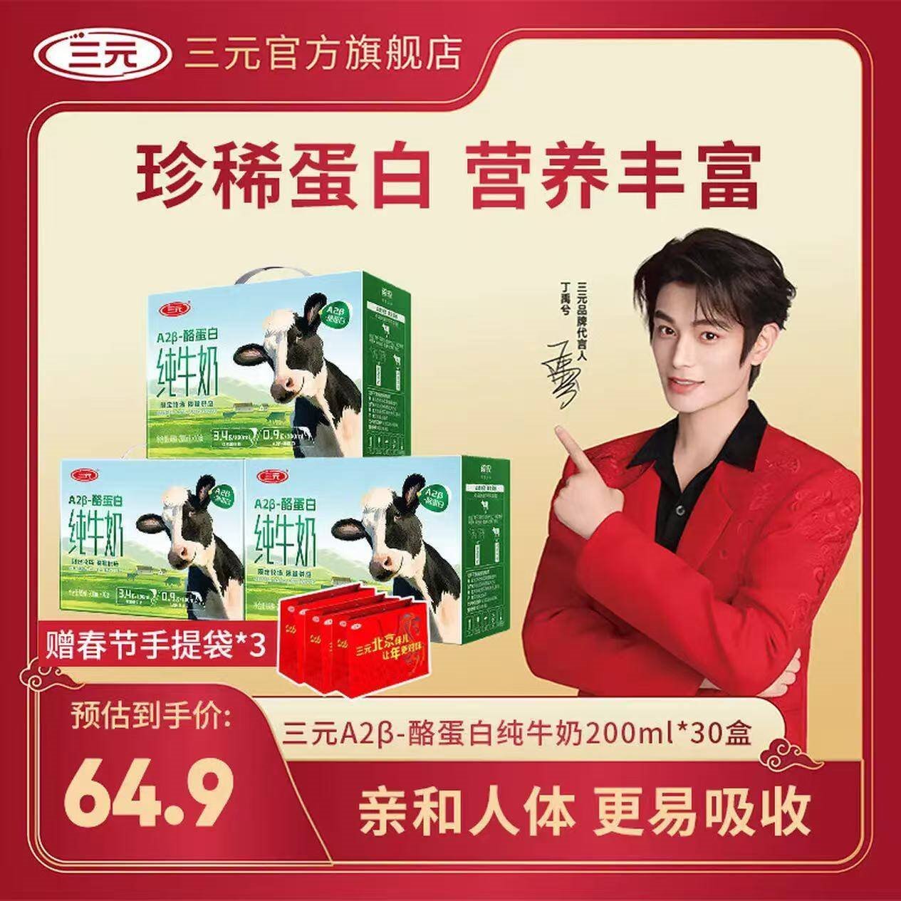 三元 A2纯奶200ml*10盒*3提