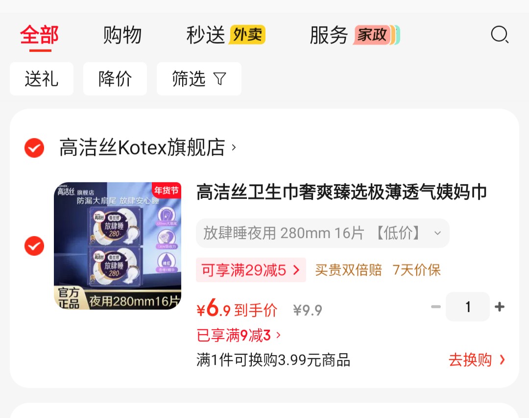 高洁丝 (Kotex)卫生巾奢爽臻选极薄透气姨妈巾280mm 16片【6.9】