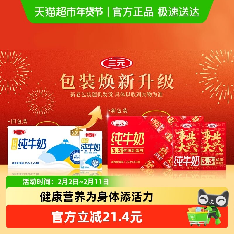 三元特品纯牛奶24盒/箱