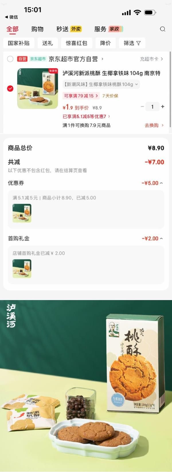 泸溪河新派桃酥 生椰拿铁味104g,2首单【1.9】