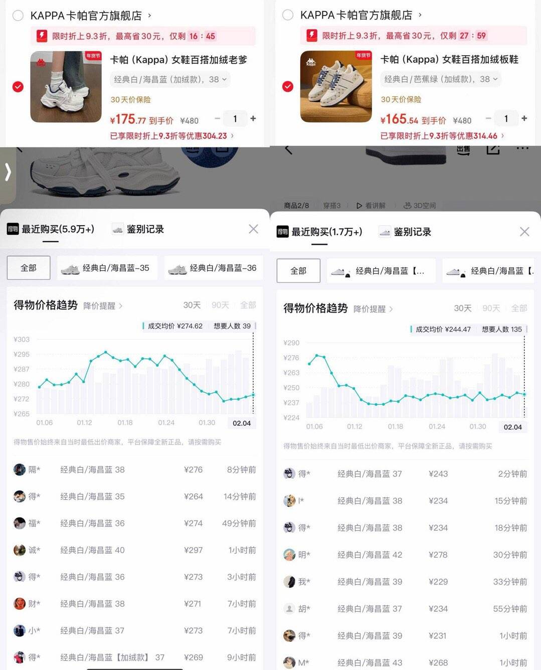 ②小白鞋加绒 购物金到手156 锝物240