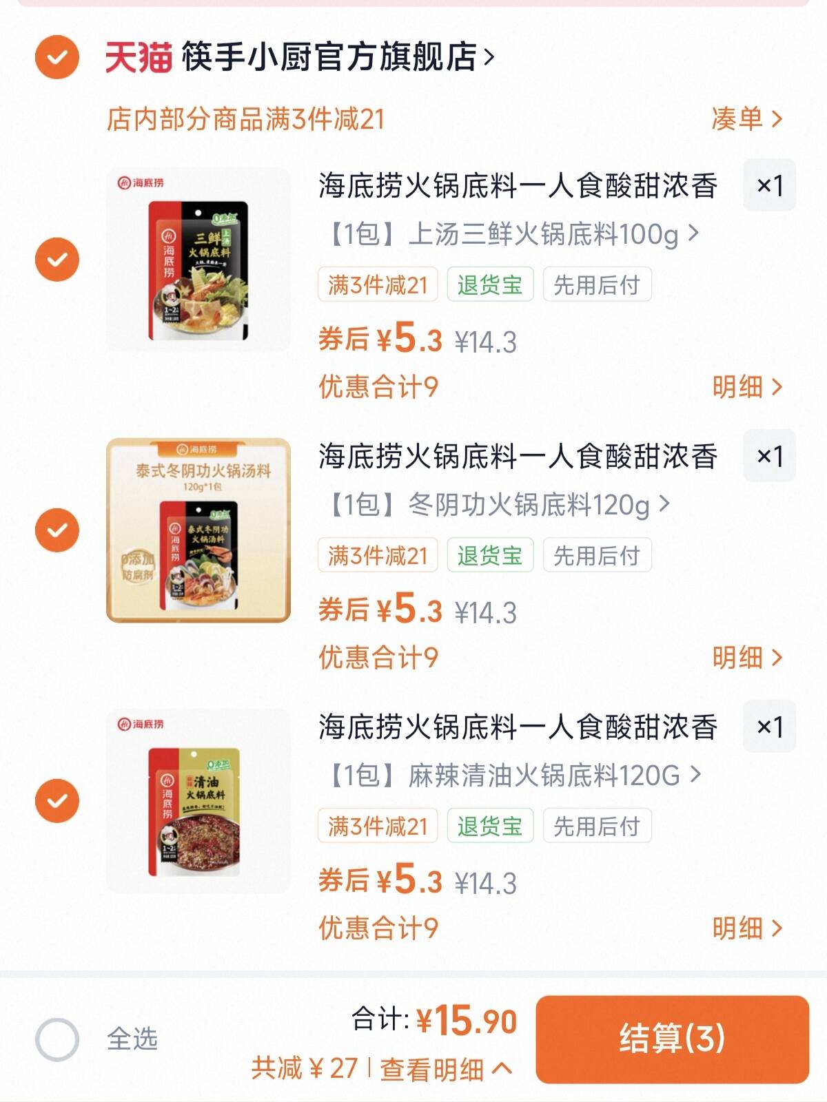 5.3一袋!海底捞火锅底料 多款口味,任选3件15元.9好单发报员2026年02月09日 19:140举报 5.3一袋!海底捞火锅底料多款口味,任选3件15元.9https://m.tb.cn/h.7F98kX9复制文案