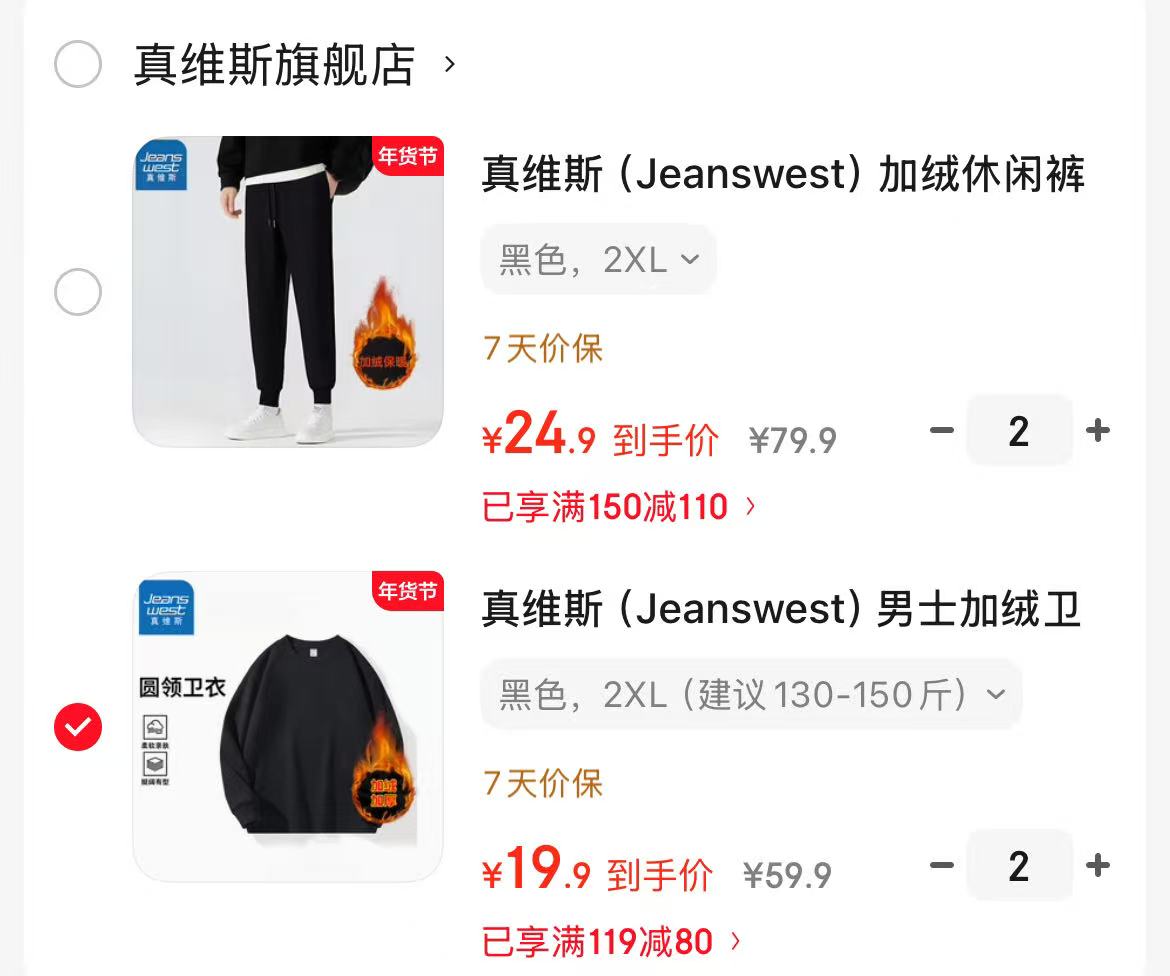 真维斯 (Jeanswest)男士加绒卫衣,拍2件【39.8】