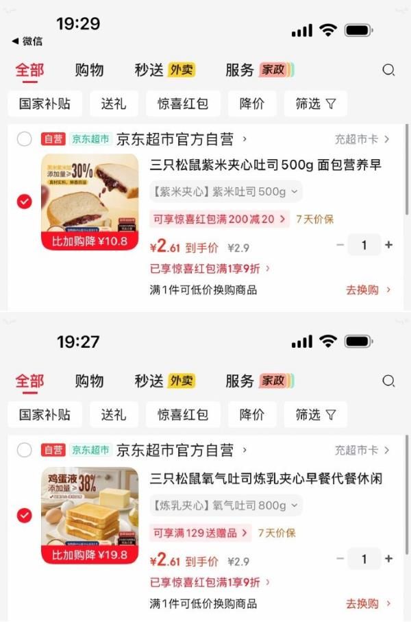 三只松鼠氧气吐司炼乳夹心800g,2.9
