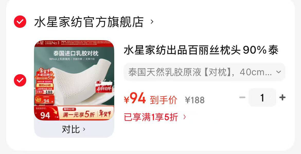 94元泰国天然乳胶枕2只